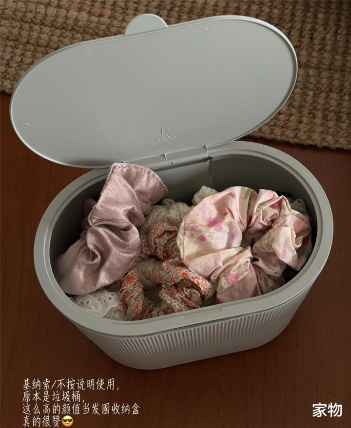我现在基本上是直接把它放在梳妆台下面,收纳各种各样的发圈,简直不要太合适,既不站太多空间,又能防尘防灰,集中收纳在一起更是方便查找拿取,好用得很,这个用法也分享给诸位试试。