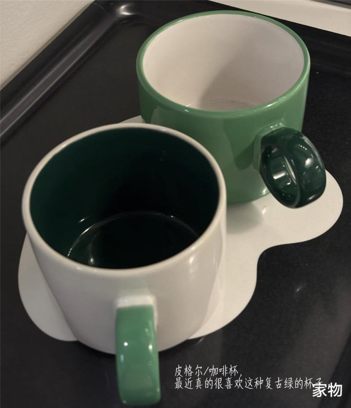 我真的很喜欢这种饱满圆润的,带点儿复古风的杯子,杯形很好就不用多说了,关键是这抹复古的绿色也很吸引人,用它喝咖啡,感觉仪式感都强多了呢。